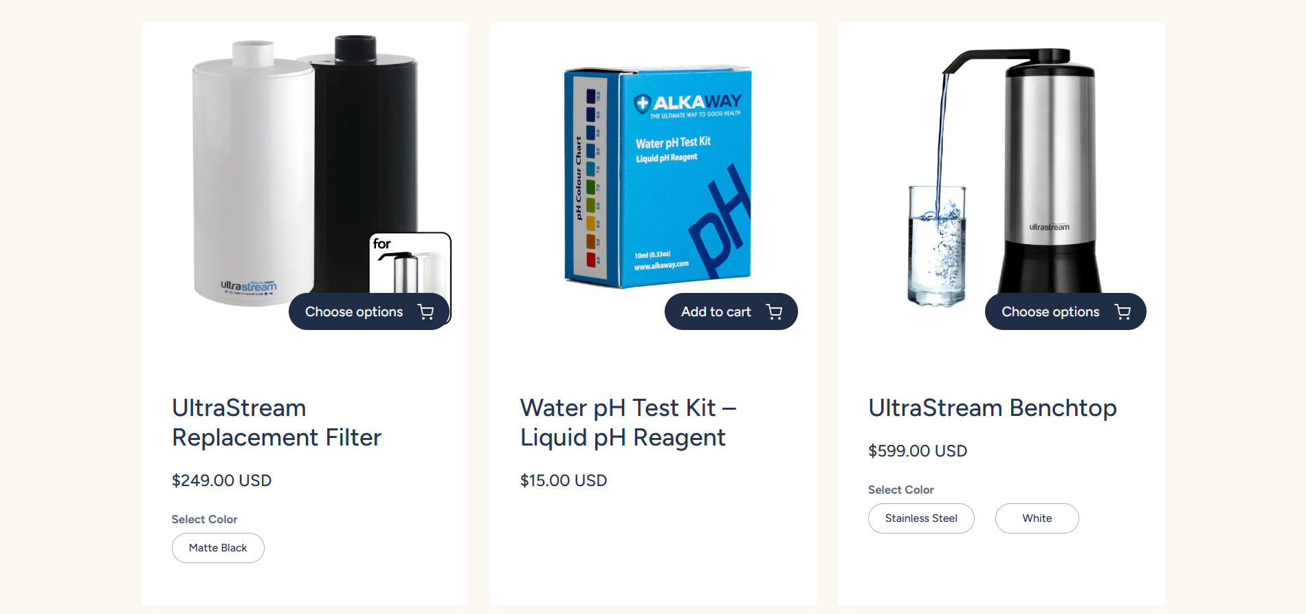 We built the AlkaWay store on Shopify 2.0 — designed to present Primal Water as the premium, science-backed water filtration solution it is, and to guide health-conscious shoppers through a clear, educational purchase journey.