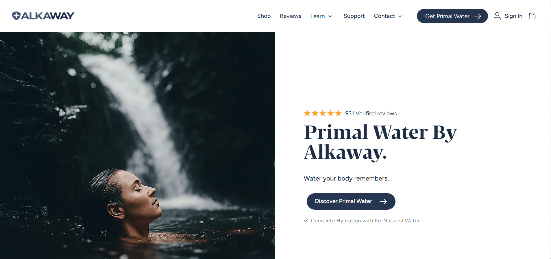 AlkaWay is an Australian-owned health and wellness brand behind Primal Water — a premium hydrogen water filter that removes contaminants, re-mineralises, rebalances pH, and infuses water with molecular hydrogen. With 931+ verified reviews, endorsements from elite athletes, and a clear positioning against competing products, AlkaWay had a strong brand and product ready to scale.